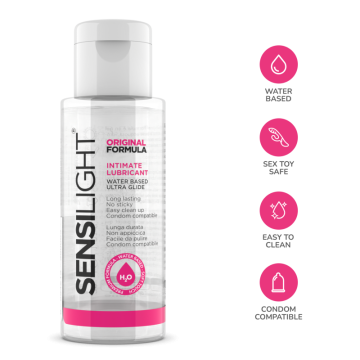Sensilight Original è un lubrificante intimo a base acquosa, specifico per l'idratazione e la lubrificazione vaginale o anale prima della penetrazione. Non unge e non contiene grassi. Grazie alla sua esclusiva formulazione ricca di preziosi elementi attivi naturali Sensilight previene fastidi, bruciori ed irritazioni tipiche delle zone intime sottoposte a stress naturali e prolungati. Il prodotto é idrosolubile, compatibile con profilattici ed accessori sessuali. Prima della penetrazione stendere un leggero velo di prodotto sulla parte interessata. Prodotto "Made in Italy" dermatologicamente testato.