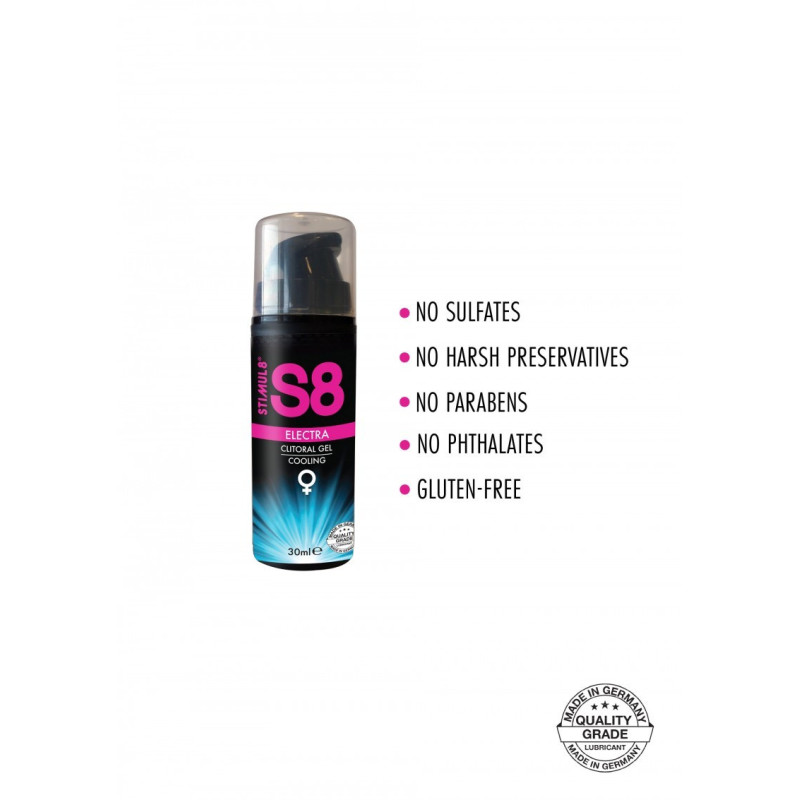 Aggiungi un tocco sensazionale al tuo gioco intimo con il gel Clitoral Cooling di Electra di S8. Questo gel premium ha un effetto di raffreddamento delicato quando viene applicato all'area desiderata, facendo vibrare e pulsare i tuoi punti caldi con puro piacere passionale! Intensifica il tuo orgasmo e goditi la massima stimolazione con questa formula sicura per il corpo. Il gel di raffreddamento S8 Electra è privo di glicerina, privo di solfati, privo di parabeni, privo di ftalati e non contiene conservanti aggressivi, che lo rendono una scelta "naturale" e affidabile nel benessere intimo.