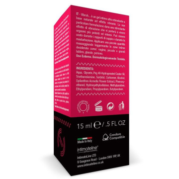 Vibroh… è un gel intimo ultra stimolante a base naturale a effetto vibrante. La sua particolare formulazione dona uno stimolante effetto di vibrazione, che vi porterà a vivere orgasmi più potenti e intensi. Può essere usato durante i rapporti di coppia o durante la masturbazione. Applicare una piccola quantità massaggiando leggermente le zone intime desiderate come: clitoride, vagina, piccole o grandi labbra, glande, perineo. VIBROH è un gel intimo ultra stimolante a base naturale ad effetto vibrante. La sua particolare formulazione dona uno stimolante effetto di vibrazione che vi porterà a vivere orgasmi più potenti ed intensi. Può essere usato durante i rapporti di coppia o durante la masturbazione. Applicare una piccola quantità massaggiando leggermente le zone intime desiderate come: vagina, piccole o grandi labbra, glande, perineo. Uso esterno. Latex compatibile. Dermatologicamente testato