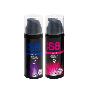 Questo set include il sexy S8 Spark Clitoral Gel per lei e il S8 Delay Gel per lui. Quando combinato in una sessione di passione, Spark elettrizzerà i sensi femminili e le zone erogene, mentre il Delay gli permette di andare più forte, più a lungo. Il duo perfetto, Spark e Delay sono una combinazione premium per le coppie per esplorare i propri desideri
