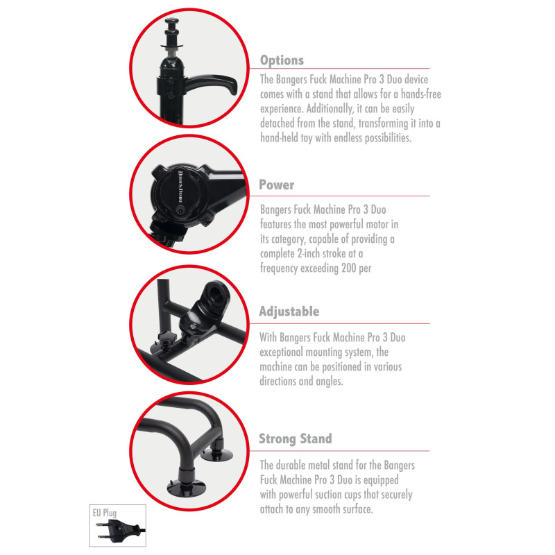 Opzioni - La Bangers Fuck Machine Pro 3 Duo è dotata di un supporto che consente un'esperienza senza mani. Inoltre, può essere facilmente staccata dal supporto, trasformandola in un giocattolo portatile con infinite possibilità.