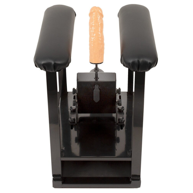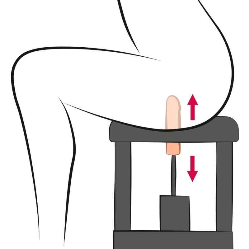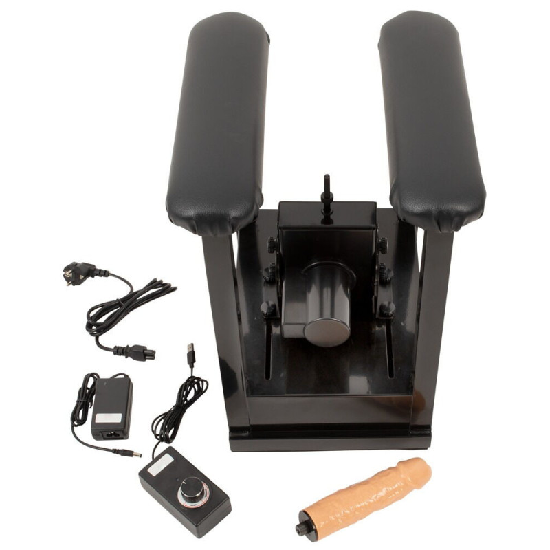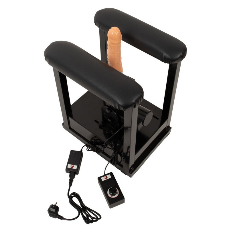Macchina del sesso elettrica. Integrato nel robusto telaio del sedile. Dildo naturale incluso. Velocità di spinta infinitamente variabile. Lunghezza della corsa (lunghezza della spinta) fino a 8 cm. Impostazioni e regolazioni multiple. Sedile imbottito. Telecomando a filo. Incl. adattatore AC/DC AUS, US, UK, EU, USB, USB-C.