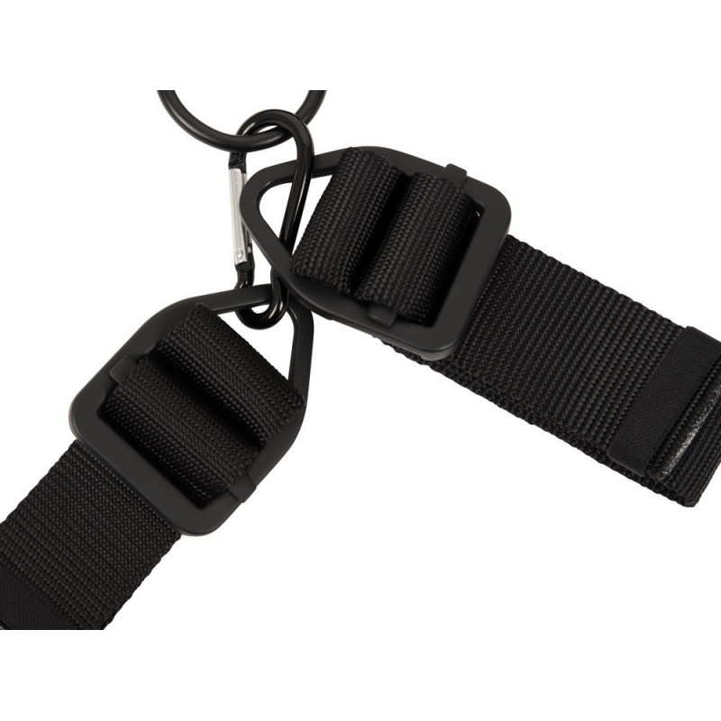 Collare e manette realizzati con robusti cinturini rivestiti in tessuto che sono regolabili all'infinito con un anello a D sul davanti è attaccato ai polsini con un moschettone