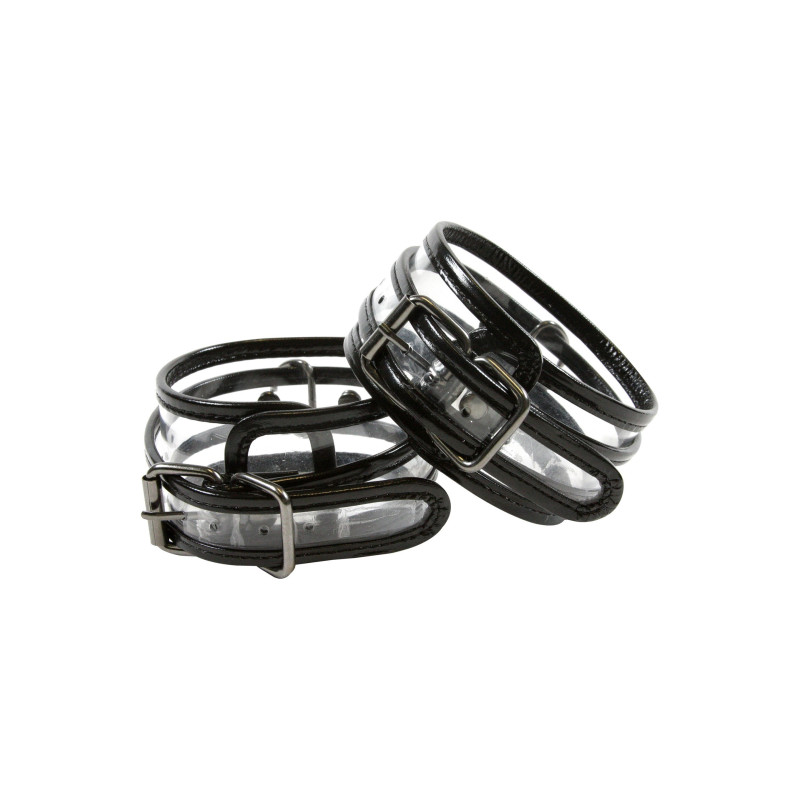 Polsini trasparenti. Hardware senza nichel completamente regolabile. Vinile antimacchia resistente al corpo. Design unisex e compatibile con tutti gli accessori Bare Bondage.