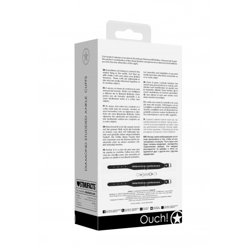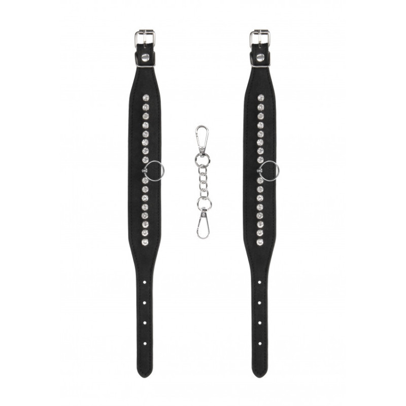 Preparati a dare piacere o riceverlo nell'intensa linea BDSM Diamond. Resistente e alla moda, la perfetta combinazione di solida (finta) pelle e borchie di diamanti eleganti ti trasformerà nell'attrazione principale della notte. A volte non avere il controllo è la cosa più sexy del mondo. Fatti legare con le cavigliere e goditi la tua libertà limitata. Queste cavigliere sono di dimensioni regolabili e possono essere facilmente attaccate insieme o ad un altro oggetto. L'aggiunta perfetta ad un problema molto eccitante: è ora di liberare il tuo lato oscuro.