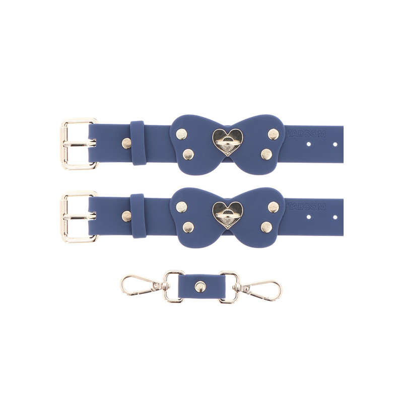 TABOOM Silicone Wrist Cuff Set. Un must-have per tutti coloro che cercano un lusso ed eccitazione nelle loro avventure intime. Realizzato al 100% in silicone sicuro per il corpo senza spigoli vivi, con un dettaglio di fiocco a farfalla alla moda. Perfette sia per emozionanti sessioni di BDSM che come accessorio sexy. Le forti clip e gli anelli offrono infinite possibilità giocose per prendere in giro e piacere.