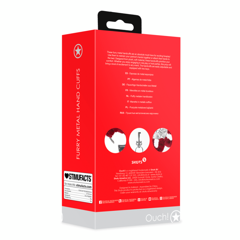 Queste manette di metallo peloso sono un must assoluto per eccitanti preliminari! Utilizzatele per bloccare le mani del vostro partner o per fissarle al letto. Progettate in materiale morbido e felpato, queste manette danno priorità al vostro comfort. Se vi piace partecipare a giochi di ruolo o organizzare feste, questo oggetto di scena porterà un livello di eccitazione a qualsiasi evento. Le manette sono facilmente regolabili e dotate di due chiavi.