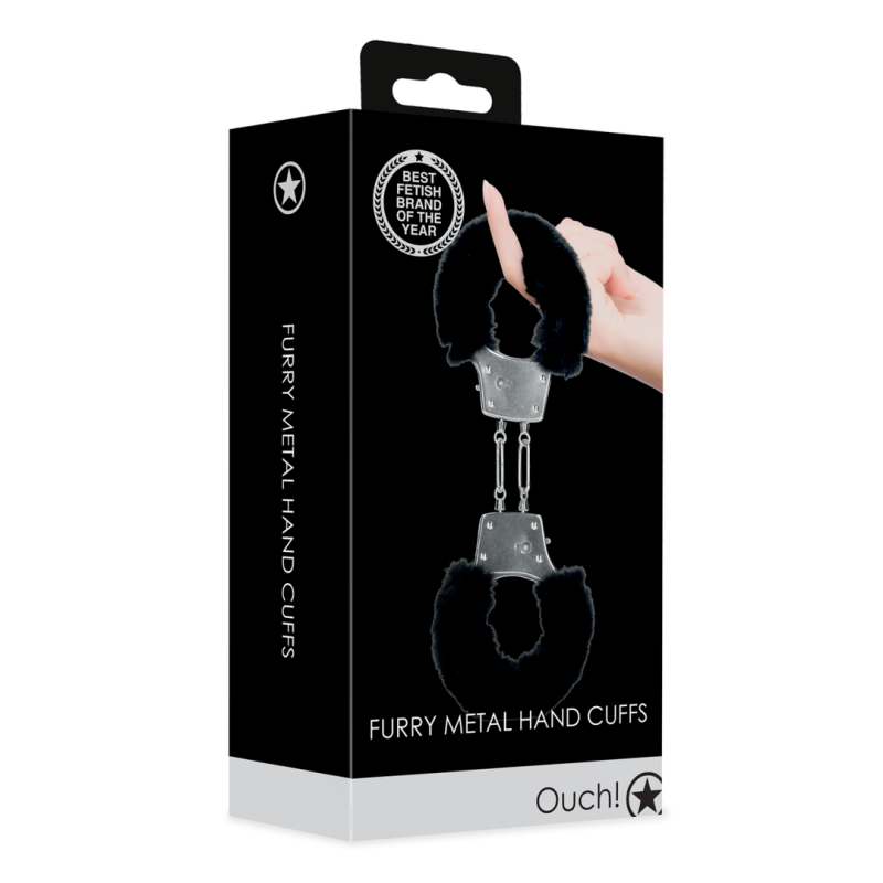 Furry Metal Hand Cuffs - Black