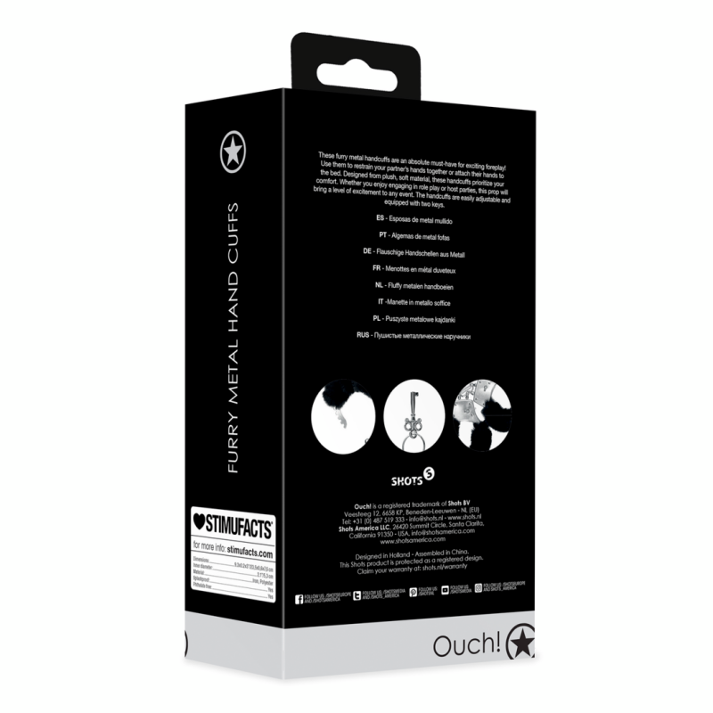 Queste manette di metallo peloso sono un must assoluto per eccitanti preliminari! Utilizzatele per bloccare le mani del vostro partner o per fissarle al letto. Progettate in materiale morbido e felpato, queste manette danno priorità al vostro comfort. Se vi piace partecipare a giochi di ruolo o organizzare feste, questo oggetto di scena porterà un livello di eccitazione a qualsiasi evento. Le manette sono facilmente regolabili e dotate di due chiavi.