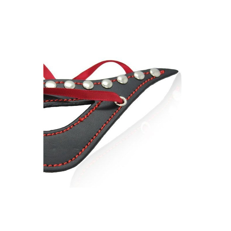 Cosa è? Una maschera dal look malizioso, col suo nero lucido screziato da borchie e finiture rosse. Aggiungerà un retrogusto piccante alla vostra vita sessuale, stuzzicando il vostro gusto per l'esotico ed il proibito. A Cosa serve? A rendere più ricchi i vostri rapporti, portando il livello di gioco, complicità ed eccitazione allo stadio successivo. Alle volte basta poco per far divampare la fiamma della passione! Come si usa? Indossate la maschera e osservate l’eccitazione montare nel vostro partner.