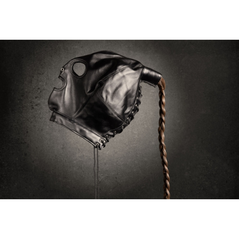 Pronto a dare vita alle tue fantasie fetish più selvagge? Questa maschera nasconde il tuo viso e lascia gli occhi, il naso e la bocca scoperti per una eccitazione massima! La maschera viene fornita con una lunga e seducente parrucca marrone sulla parte superiore, creando un irresistibile effetto di coda di cavallo. Indossa il cappuccio e allaccialo con i lacci sul retro. Preparati ad abbracciare il desiderio eccitante di essere legato e immergiti completamente in un mondo di piacere ed esplorazione.