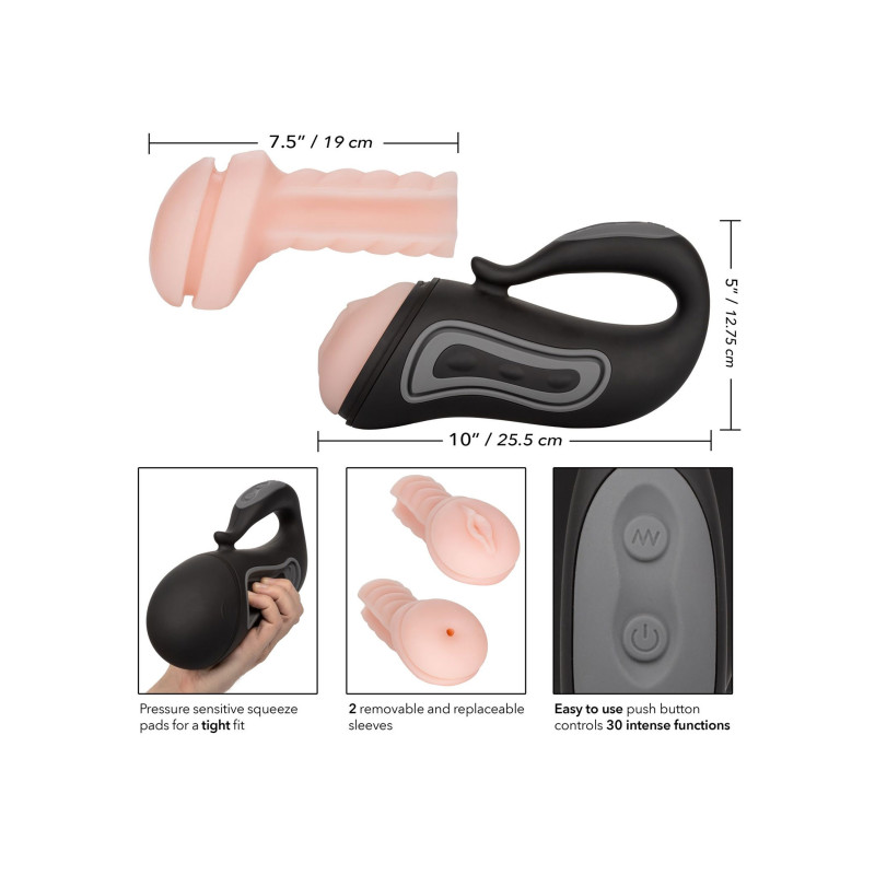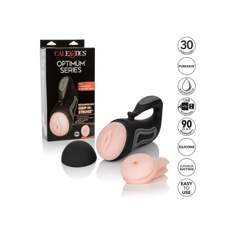 L'Optimum Power® Rechargeable Grip-N-Stroke ™ è uno strobo a vibrazione completamente autonomo con 30 funzioni di vibrazione, 2 manicotti rimovibili e spremiagrumi sensibili alla pressione per un'esperienza di carezza completamente personalizzabile. Gli squeeze pad sensibili alla pressione personalizzano la tenuta ad ogni colpo, mentre 30 funzioni di vibrazione si stringono e ti prendono in giro verso nuove altezze climatiche. Abbraccia il piacere completamente personalizzabile mentre sfiora le 30 funzioni di vibrazione con ogni tocco dei pulsanti in silicone. Il chip di memoria all'avanguardia ti consente di cogliere l'ultima funzione utilizzata, dandoti esattamente ciò che desideri ogni volta. Utilizza le 2 maniche a coste rimovibili con lo stroker per una stimolazione ultra-tesa o utilizza in modo indipendente per un'esperienza di carezza esplosiva. Ogni manica è realizzata in gomma termoplastica PureSkin®, un materiale super-morbido e ultra elastico con una sensazione unica e realistica che offre pura soddisfazione in ogni tratto. Le maniche della camera rimovibili sono facili da usare, facili da pulire e non richiedono particolare attenzione. Attendo con ansia fino a 2 ore di piacere di carezza vibrante ad alta intensità e tempo di ricarica di sole 2 ore.