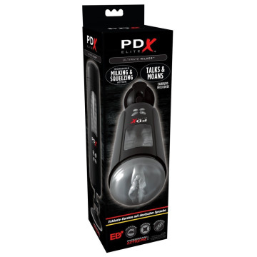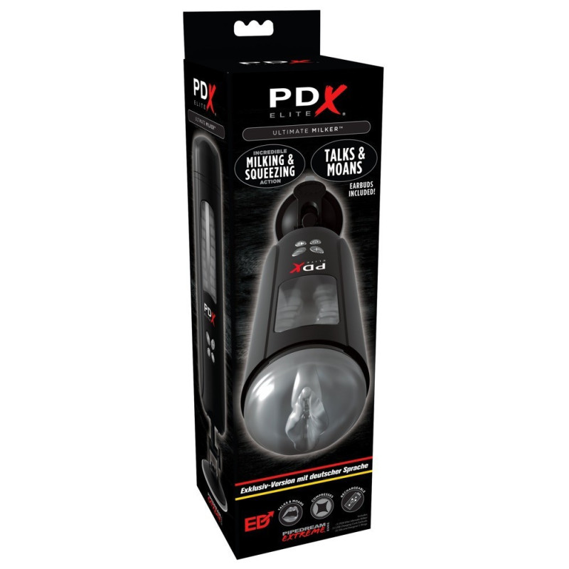 Più che masturbazione! Elegante masturbatore con 10 livelli di mungitura e 5 velocità. La funzione audio, che seduce l'utente con diversi suoni e detti in tedesco, è particolarmente eccitante. Si attiva non appena vengono collegate le cuffie in dotazione. Il canale del piacere della manica rimovibile è dotato di intensi solchi e scanalature stimolanti. Un altro punto culminante è la staffa a parete integrata, che consente il piacere delle mani libere, mentre la finestra nel masturbatore consente una visione emozionante di ciò che sta accadendo. Include cavo di ricarica USB e 3 anelli per pene di diversi diametri.