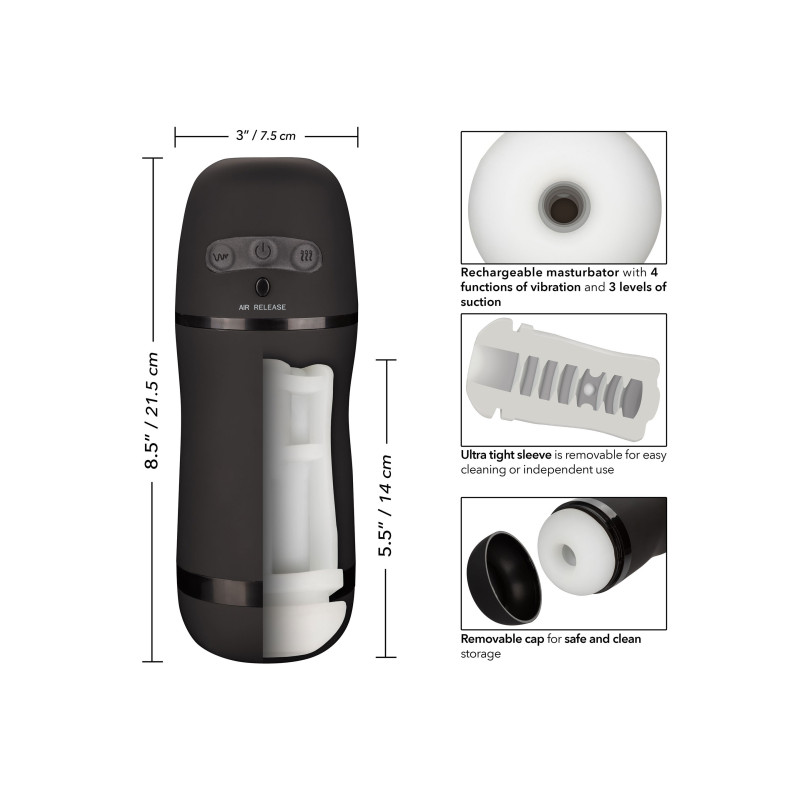 Lasciati avvolgere dal piacere pulsante del prossimo livello con il potente Optimum Power® Pulsar Stroker. Questo masturbatore vibrante totalmente autonomo è stato realizzato per avvolgere i sensi con un'esperienza di carezza completamente personalizzabile. Una camera testurizzata ultra-aderente ti avvolge strettamente, mentre 3 livelli di potente aspirazione e 4 funzioni indipendenti di vibrazione offrono un piacere senza precedenti ad ogni colpo. Non importa quanto le cose diventino calde e pesanti, il pannello di controllo easy-touch semplifica la regolazione delle funzioni, tieni premuto il pulsante di accensione per 3 secondi per accendere / spegnere. Un manicotto testurizzato ultra-stretto e ultra-morbido può essere rimosso per la pulizia o utilizzato indipendentemente dallo stroker. Prendi il tuo piacere con il cappuccio rimovibile per riporlo in modo sicuro e pulito. Concediti oltre 1,5 ore di piacere di suzione a bassa velocità e ricarica la passione in sole 2 ore con il cavo USB in dotazione.