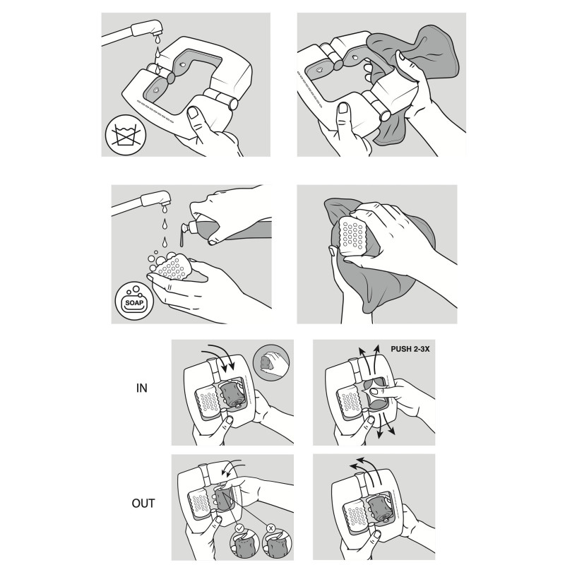 Facile da pulire: resistente agli schizzi IPX4 e composto da sole 3 parti. Basta rimuovere i rotoli e pulirli con acqua e sapone. Asciugati e preparati per la tua prossima avventura. Ancora e ancora e ancora...