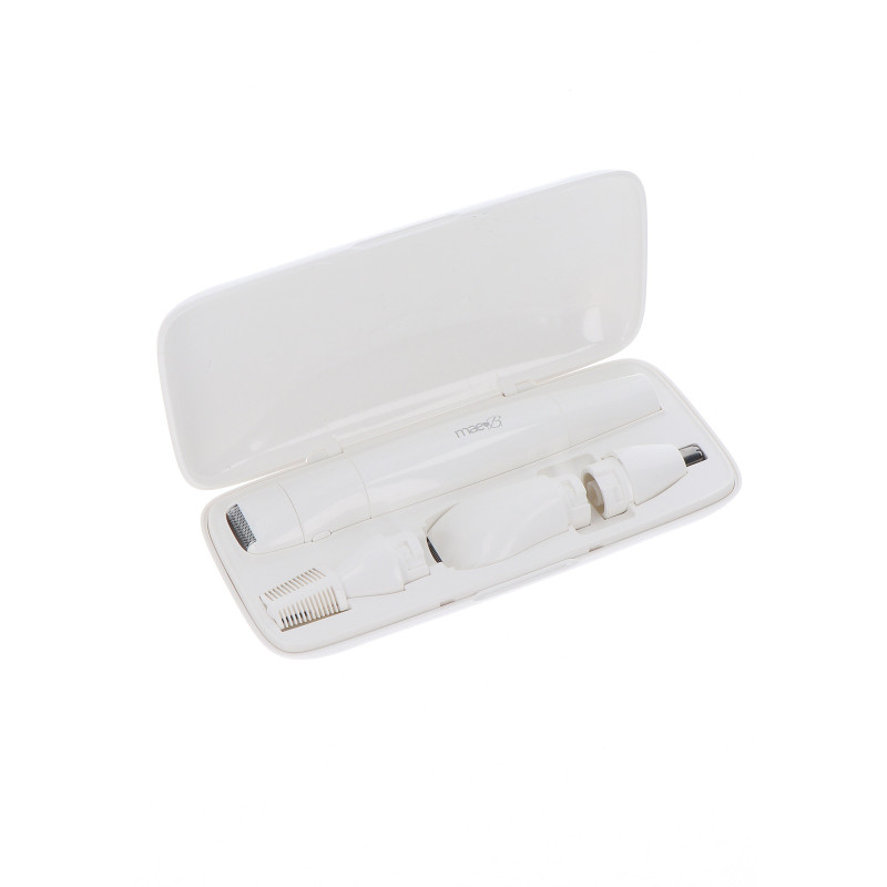 All in one Ladyshave - Rifinisci e modella con precisione i peli del viso e del corpo con il ladyshave all-in-one di Mae B. L'impugnatura ergonomica offre un controllo e un comfort ottimali durante l'uso. Le lame affilate, ipoallergeniche e in acciaio inossidabile rimuovono i peli del viso e del corpo in modo efficiente e sicuro. La rasatura da donna all-in-one include un set completo con quattro diverse testine di rifinitura e una custodia per mantenere il dispositivo e gli accessori al sicuro.