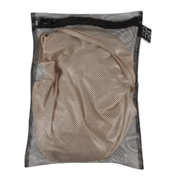 Borsa per il bucato in rete nera con scritte a 2 colori. Con pratica cerniera per una rapida apertura e chiusura. Adatto per lavatrice e asciugatrice. 35 cm di lunghezza, 25 cm di larghezza. Poliestere.