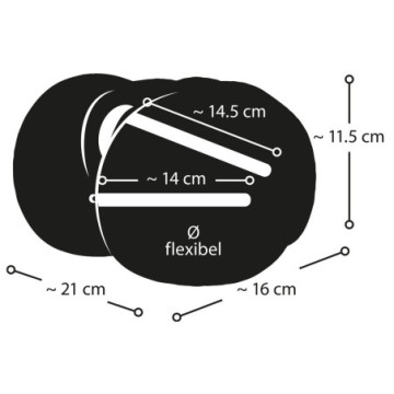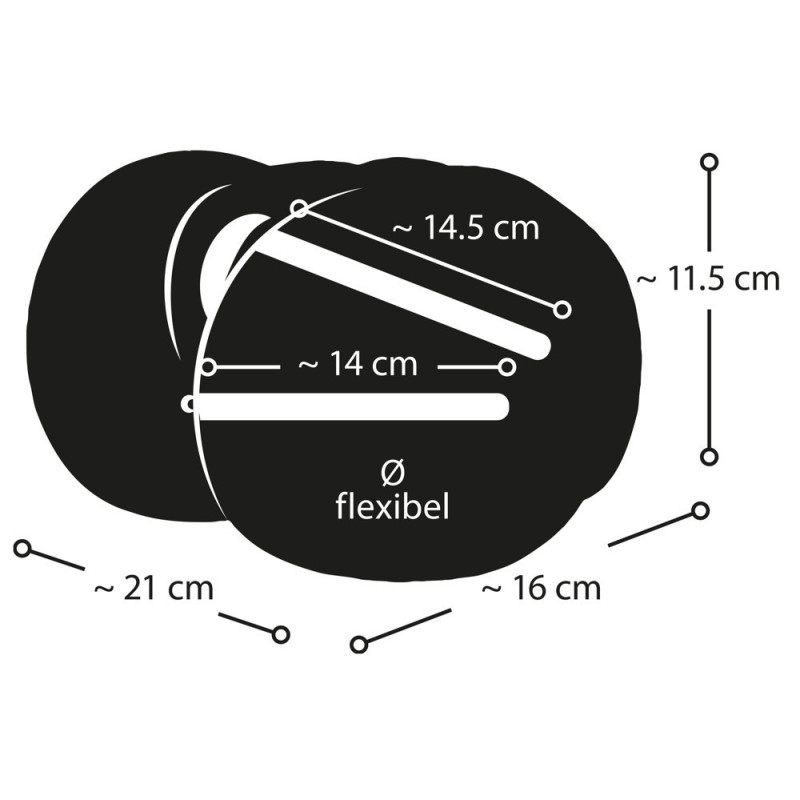 16 cm di lunghezza, 21 cm di larghezza, 11,5 cm di altezza. Vagina profonda 14,5 cm, ano profondo 14 cm, entrambi i Ø stretti ed elastici. Peso: 2,416 kg. TPE.