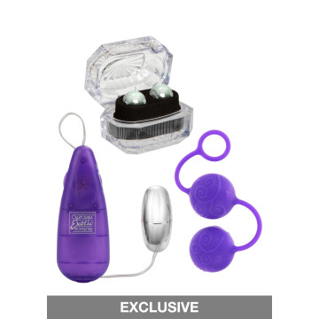 Rafforza e tonifica i muscoli dell'amore con Her Kegel Kit. Il kit di allenamento contiene tutto il necessario per iniziare il fitness del pavimento pelvico, per aumentare il piacere sensuale e la soddisfazione orgasmica. Il kit include palline di Kegel in silicone super morbido che sono decorate con creste di piacere, palline ergonomiche in acciaio inossidabile pesate nella loro scatola, e uno stimolatore a forma di proiettile in ABS argentato a più velocità. Per un'eccitazione più intensa, il controllo dello stimolatore può essere dato al vostro partner. La collezione facile da usare è progettata per stimolare i muscoli di Kegel in modo che si stringano e si tonifichino. Per una maggiore sensibilità utilizzare un lubrificante di qualità quando si inseriscono le palline di Kegel nella vagina.Questo kit è perfetto per la prima volta o per utenti esperti che vogliono elevare il piacere erotico. Le palline di Kegel in silicone sono attaccate ad un cavo di recupero per un facile utilizzo e sono progettate per la stimolazione interna che può essere comodamente indossata durante il giorno. Stringere e rafforzare i muscoli di Kegel migliora le sensazioni sensuali e massimizza la soddisfazione sessuale. Pulire sempre il kit prima e dopo ogni utilizzo.