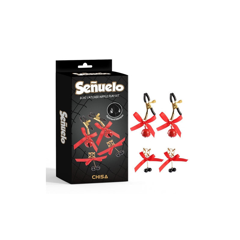 Echo Catcher Kit è il set ideale per esplorare il piacere attraverso la stimolazione dei capezzoli. Pensato per intensificare le sensazioni durante i preliminari o i momenti intimi, questo kit comprende accessori specifici per un’intensa stimolazione dei capezzoli dal design elegante, caratterizzato da raffinati fiocchi e catenelle con campanellini.