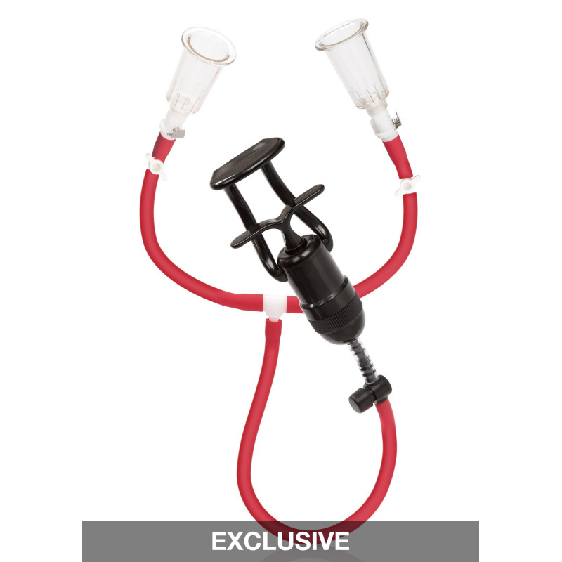 Intensificate il vostro piacere con la pompa Muscle Nips di COLT. La pompa per impieghi gravosi è progettata per il gioco dei capezzoli e vanta un'intensa azione di aspirazione per un'estasi da capogiro. La pompa è composta da 2 cilindri acrilici trasparenti multiuso con tenuta sicura, base ultra flangiata, tubo flessibile in silicone rimovibile e valvole di rilascio rapido dell'aria. Il grilletto facile da premere assicura la massima stimolazione del pompaggio e risultati sempre perfettamente eretti. Le pompe cilindriche sono facili da collegare ai capezzoli e i tubi flessibili sono dotati di valvole on/off indipendenti per un uso personalizzato. Per l'uso, è sufficiente collegarsi direttamente al nipplo per ottenere una tenuta sicura. Pompate sulla maniglia del grilletto e godetevi le sensazioni dell'orgasmo. Prima e dopo l'uso, pulire la pompa con acqua e sapone o con uno spray detergente per giocattoli.