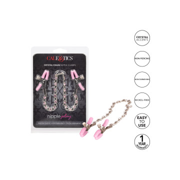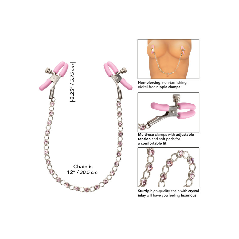 Spingete le sensazioni al livello successivo e godetevi il gioco dei capezzoli con il Crystal Chain Nipple Clamps . Esplorate sensazioni elevate con i 2 morsetti per capezzoli completamente regolabili, la catena stuzzicante e i cristalli scintillanti. Raggiungete nuovi livelli di piacere giocoso con i morsetti regolabili. Stringete i morsetti birichini al vostro corpo e godetevi ogni scarica di dolore e piacere.