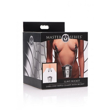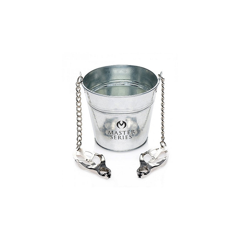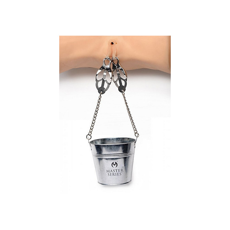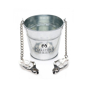 Il secchio per schiavi è l'accessorio BDSM perfetto per i giochi più malvagi con il vostro partner. Combinando il design dei classici morsetti a trifoglio con un secchio appeso a catene, più peso si aggiunge, più forte sarà il pizzico e la trazione. Stuzzicate il vostro partner con ogni sassolino, moneta o goccia d'acqua che finisce nel secchio. Questo subdolo dispositivo è perfetto per i capezzoli o le labbra, ma può essere utilizzato ovunque si desideri!