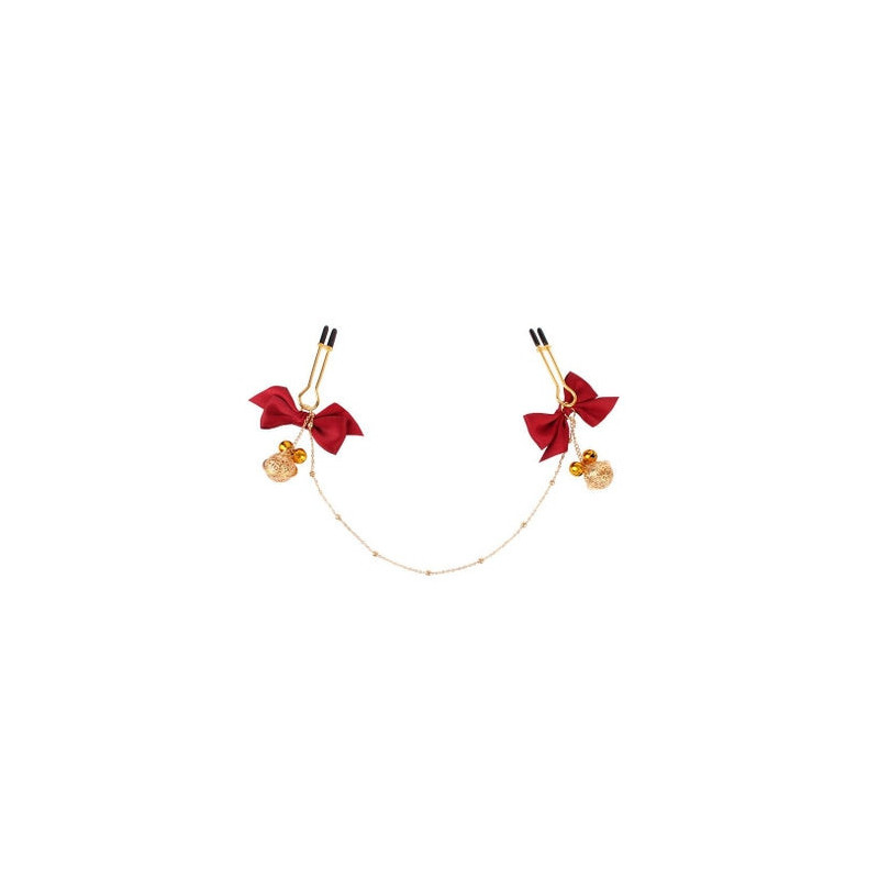 Il Chisa Sexy Temper Kit è set di accessori erotici progettati per amplificare il piacere e l'eccitazione durante i giochi erotici. Questo set offre una combinazione unica tra stimolazione dei capezzoli e anale, permettendo agli utenti di esplorare una varietà di sensazioni e di raggiungere nuovi livelli di soddisfazione. Il set contiene due morsetti per capezzoli regolabili e un plug anale, tutti decorati con graziosi fiocchi e catenelle con campanellini.