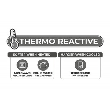 Questa spina con supporto si adatta individualmente a chi la indossa. A temperature elevate diventa morbida e può essere deformata. Questo può essere ottenuto utilizzando un forno a microonde (max. 30 secondi) o acqua calda (max. 2 minuti). Nel frigorifero, invece, la spina diventa dura. Perfetto per i giochi di temperatura e di materiali.