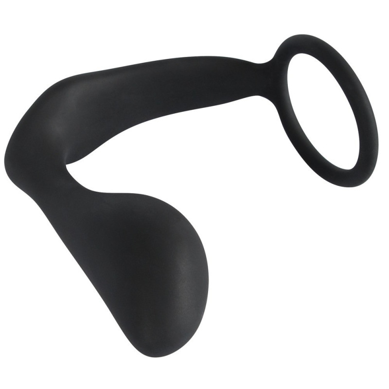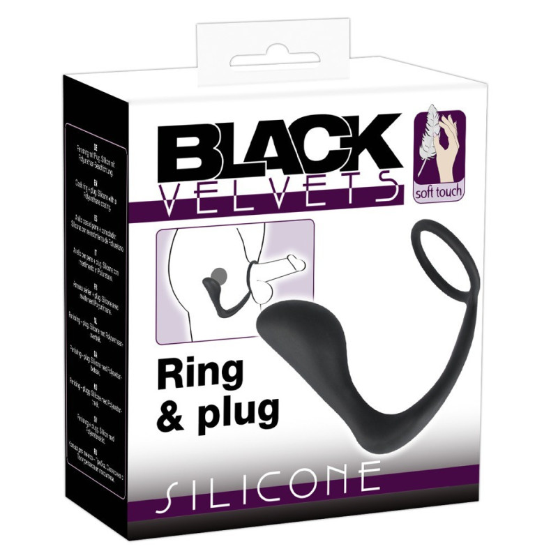 Nero. Anello per pene Ø 4 cm (flessibile), ponte lungo 7 cm, plug lungo 10 cm, profondità di inserimento 8 cm, Ø 1,1-3,5 cm. Materiale: silicone con rivestimento in PU.