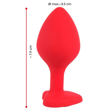 Lusso e glamour - e divertimento - per la porta sul retro! Classico butt plug con un chiaro bordo in pietra preziosa all'estremità a forma di cuore estetico. Questa sensibile spina può essere meravigliosamente integrata nel fare l'amore sia dal nuovo arrivato che dall'intenditore anale e offre al partner una vista ammaliante. La pietra è rimovibile. Lunghezza totale 7,9 cm, lunghezza di inserimento 6,7 cm, Ø 3,5 cm. Silicone con rivestimento in PU, acrilico.