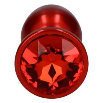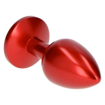Plug anale in alluminio laccato rosso intenso con un gioiello incastonato alla base. Punta arrotondata per un graduale inserimento, facile presa e maneggevolezza. Totalmente liscio e con classica forma a goccia.
