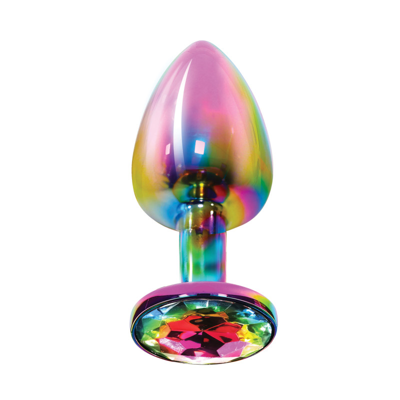 Il Twilight Booty Jewel è un plug anale di qualità con un gioiello arcobaleno nella base, che fa risplendere di colore la tua backdoor! L'elegante plug presenta una silhouette affusolata e una base svasata, impreziosita da un gioiello arcobaleno. Realizzato in alluminio, il Twilight Booty Jewel è liscio al tatto e completamente sicuro per il corpo. Un must della collezione Anal Play di TOYJOY. È il plug unisex perfetto per aggiungere un tocco glamour e colorato alle tue avventure anali.