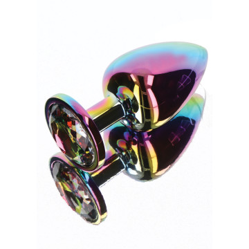 Il Twilight Booty Jewel è un plug anale di qualità con un gioiello arcobaleno nella base, che fa risplendere di colore la tua backdoor! L'elegante plug presenta una silhouette affusolata e una base svasata, impreziosita da un gioiello arcobaleno. Realizzato in alluminio, il Twilight Booty Jewel è liscio al tatto e completamente sicuro per il corpo. Un must della collezione Anal Play di TOYJOY. È il plug unisex perfetto per aggiungere un tocco glamour e colorato alle tue avventure anali.