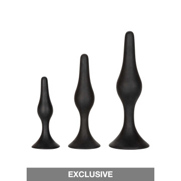 Lasciatevi trasportare in un'eccitante sensazione anale con il Silicone Anal Starter Kit. Questo kit birichino include un set di 3 plugs anali graduati e affusolati per permetterti di aumentare in modo sicuro e confortevole la stimolazione anale appassionata. Per godere di tutto ciò che l'esaltante mondo del gioco anale ha da offrire, l'allenamento è necessario per garantire la totale sicurezza e soddisfazione. Ogni sonda nel nostro kit aumenta gradualmente in lunghezza e circonferenza per un piacere superbo a qualsiasi livello di gioco di piacere.Mentre ogni aumento del tuo allenamento espande i tuoi orizzonti, usa la comoda base flangiata per una stimolazione vaporosa, un inserimento senza sforzo e una rimozione delicata. Le sonde flessibili sono fatte di un silicone Satin Finish™ liscio e senza cuciture. Questo materiale sicuro per il corpo è senza profumo e senza ftalati per mantenere i tuoi punti più sensibili felici e sani.