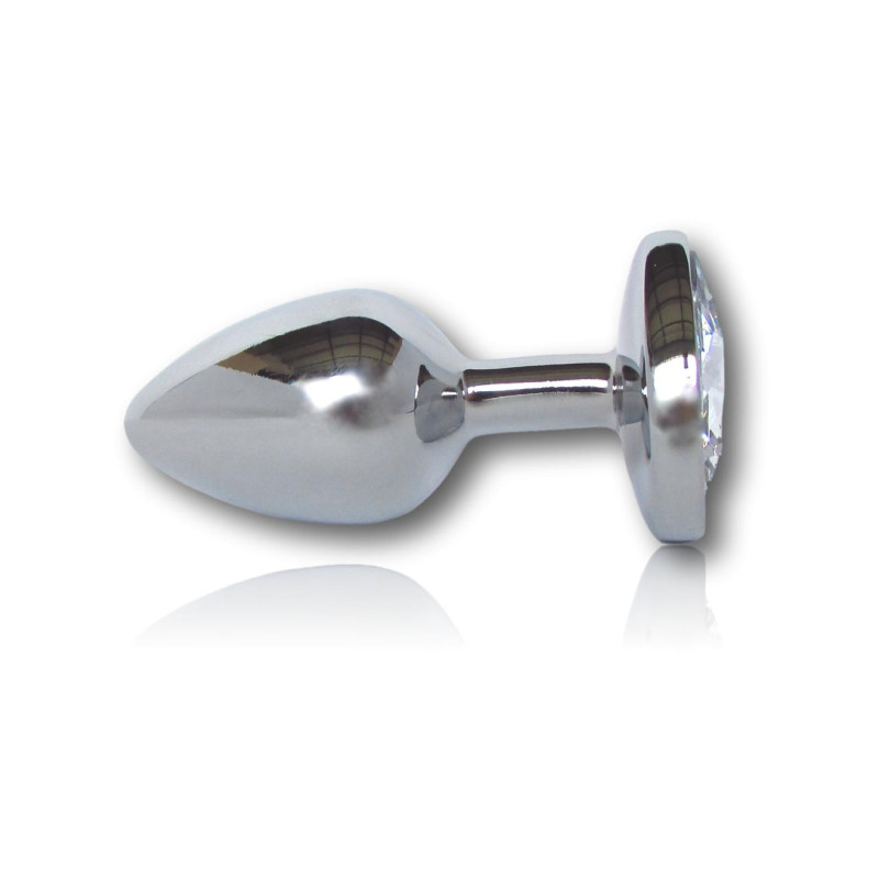 Questo mini plug in alluminio del marchio Godo di + presenta una superficie liscia con un gioiello a forma di cuore trasparente, incastonato alla base. Una volta inserito nell’ano il gioiello rimarrà esterno, vestendo di scintillante eleganza, sensualità e in completa sicurezza, il vostro fondoschiena.