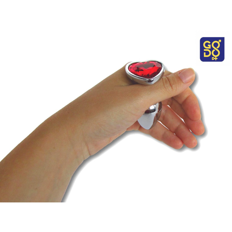 Questo mini plug in alluminio del marchio Godo di + presenta una superficie liscia con un gioiello a forma di cuore rosso, incastonato alla base. Una volta inserito nell’ano il gioiello rimarrà esterno, vestendo di scintillante eleganza, sensualità e in completa sicurezza, il vostro fondoschiena.