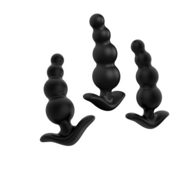 Rude Boy è un set di tre plug per il training anale dotati di un fusto soft touch con sfere di diametro diverso per una stimolazione davvero intensa. I plug sono dotati di una punta arrotondata per un inserimento più agevole e di un'impugnatura ergonomica per manovrarli in maniera facile e sicura. I plug sono realizzati in silicone e Abs di qualità, senza lattice e ftalati ed hanno un rivestimento waterproof. Le loro misure sono: 8.4 x 2.5 cm; 10.1 x 3 cm; 11.8 x 3.5 cm.