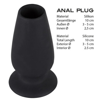 Butt plug cavo con tappo che impedisce una penetrazione troppo profonda. Perfetto per clisteri rinfrescanti e per giocare con un mini vibratore.