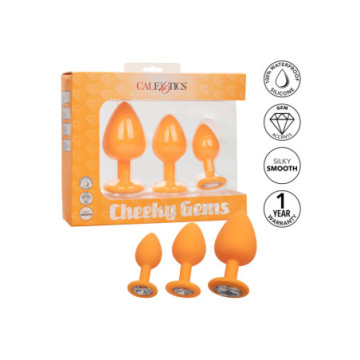 Apritevi al favoloso mondo del piacere anale con Cheeky Gems. Il kit di allenamento anale glamour comprende un set di 3 plug anali graduati con una base di gemme per permettervi di aumentare in modo sicuro e confortevole la stimolazione anale appassionata. La vista da dietro è ancora più bella grazie alla scintillante base a gemma sovradimensionata. Per godere di tutto ciò che l'esaltante mondo del gioco anale ha da offrire, è necessario un addestramento per garantire sicurezza e soddisfazione totali. Ogni sonda del nostro kit aumenta gradualmente in lunghezza e circonferenza per un piacere superbo a qualsiasi livello di gioco. Mentre ogni aumento dell'allenamento espande i vostri orizzonti, utilizzate la base ornata di gemme scintillanti per una stimolazione vaporosa, un inserimento senza sforzo e una rimozione delicata. Le sonde flessibili sono realizzate in silicone liscio e senza cuciture. Questo materiale sicuro per il corpo non è profumato e non contiene ftalati, per mantenere i vostri punti più sensibili felici e sani.