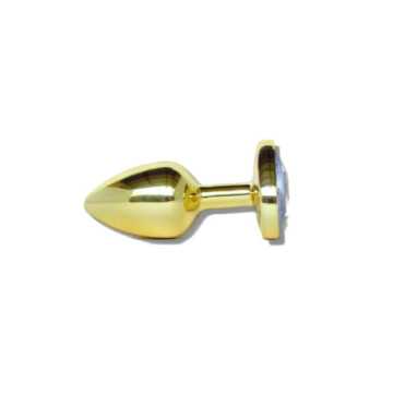 Questo mini plug dorato in alluminio del marchio Godo di + presenta una superficie liscia con un gioiello a forma di cuore trasparente, incastonato alla base. Una volta inserito nell’ano il gioiello rimarrà esterno, vestendo di scintillante eleganza, sensualità e in completa sicurezza, il vostro fondoschiena.