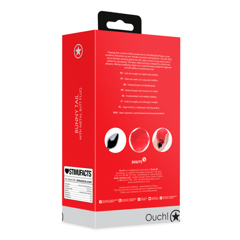 Saltando in un mondo di soffici meraviglie, il butt plug in metallo a coda di volpe è un simpatico accessorio che arricchisce i vostri momenti di intimità in camera da letto. La morbida e soffice coda di coniglio si sente benissimo sulla pelle, aggiunge un tocco di fascino accogliente ed è perfetta per i giochi di ruolo. L'elegante butt plug in metallo è sagomato per il comfort e il piacere, offrendo un peso soddisfacente e una forma affusolata adatta ai principianti e in grado di soddisfare anche gli utenti più esperti.