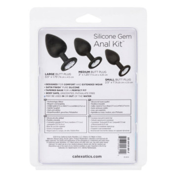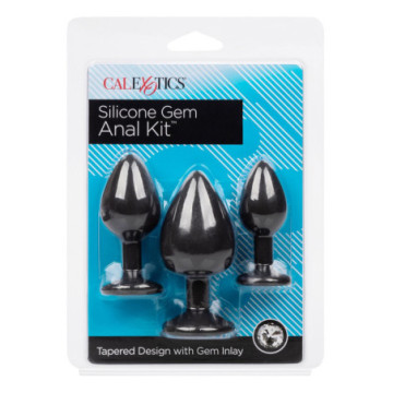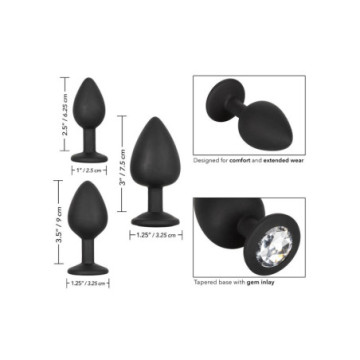 Apri la porta alle emozionanti sensazioni anali con il kit per esercizi anali con gemme di silicone. Questo kit glamour include un set di 3 plug anali graduati con base in gemma per consentirti di aumentare la stimolazione anale appassionata in modo sicuro e confortevole. Per godere di tutto ciò che l'esaltante mondo del gioco anale ha da offrire, l'allenamento serve a garantire totale sicurezza e soddisfazione. Ogni sonda nel nostro kit aumenta gradualmente in lunghezza e circonferenza per un piacere superbo a qualsiasi livello di gioco. Mentre ogni aumento del tuo allenamento espande i tuoi orizzonti, usa la base decorata con gemme scintillanti per una stimolazione vaporosa, un inserimento senza sforzo e una rimozione delicata. Le sonde flessibili sono realizzate in silicone con finitura satinata liscia e senza giunzioni. Questo materiale sicuro per il corpo è inodore e privo di ftalati per mantenere i punti più sensibili sani