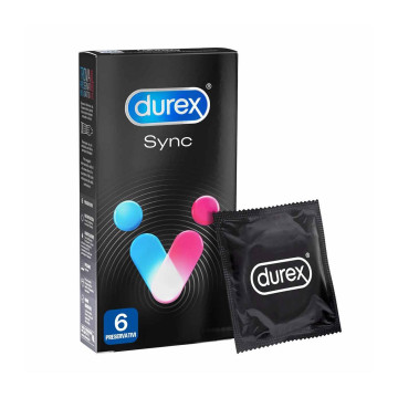 Dall'innovazione Durex, un nuovo prodotto per rivoluzionare il concetto del piacere. Con un mix incontrastato di ricerca, innovazione e qualità, Durex interpreta le esigenze del mercato e le traduce in risposte ideali per soddisfare i desideri dei consumatori alla ricerca di un completo benessere sessuale. Noi lo sappaiamo...donne e uomini sono differenti, raggiungono l'orgasmo in tempi diversi. Grazie a Sync, il piacere della coppia ha lo stesso fuso orario.
