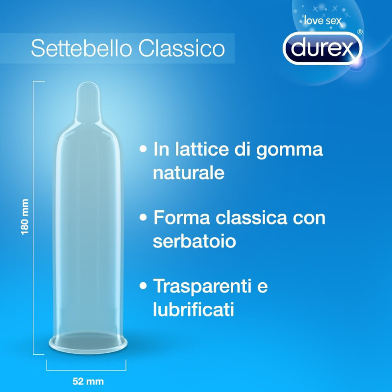 Preservativi classici. Sono il classico dei classici del marchio Durex, ideali per chi anche sotto le lenzuola preferisce andar sul classico.