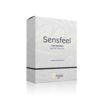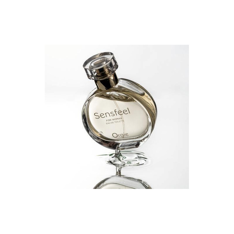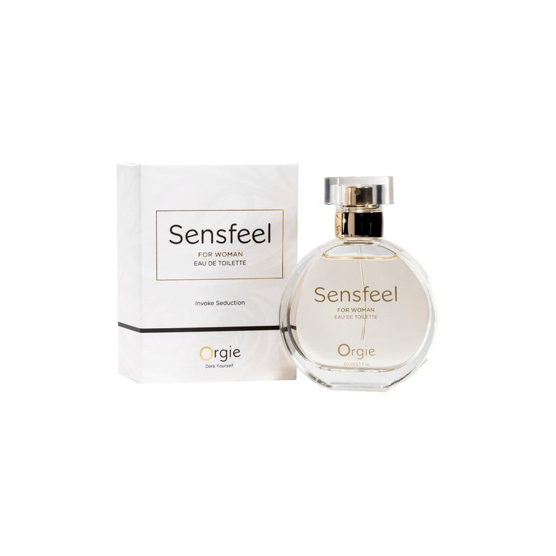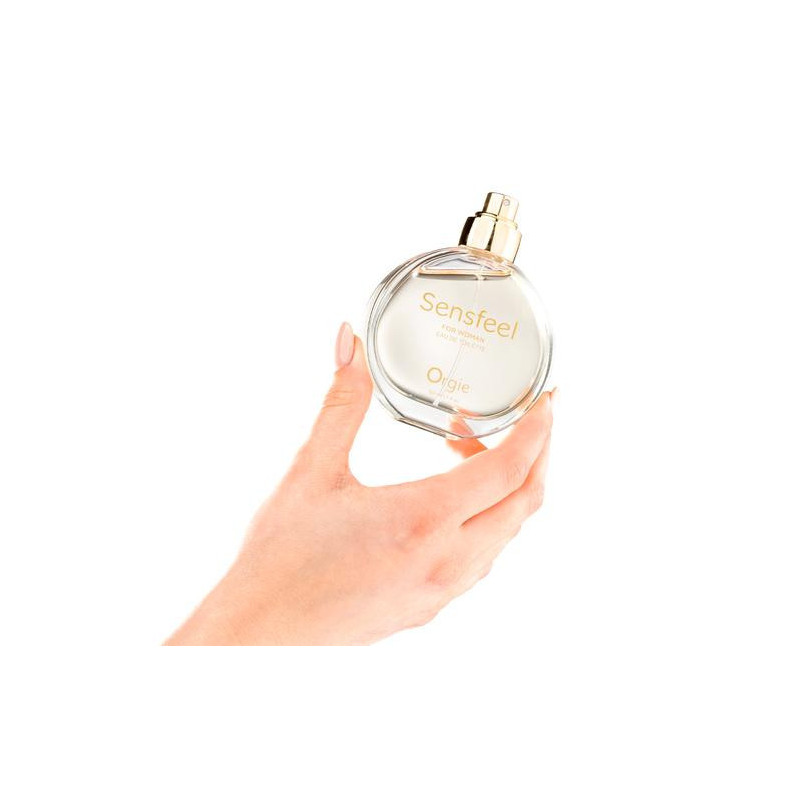 50 ml di profumo edt Sensfeel for Woman, formula esclusiva di Orgie contenente il principio attivo a base naturale Sensfeel for Her™, un potenziatore di feromoni in grado di aumentare la produzione di testosterone negli uomini grazie all'interazione di due dei suoi componenti - il gelsomino bianco (Jasminum officinale) e gli acidi grassi a catena corta (SCFA) derivati dalla carruba (Ceratonia siliqua) - che risulta in grado di imitare la copulina, il feromone sessuale femminile, e di innescare il testosterone negli uomini.