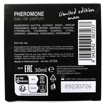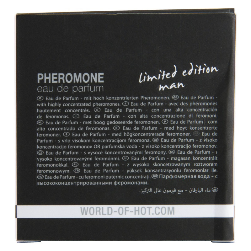 Il Pheromone Eau de Parfum DUBAI uomo in edizione limitata di HOT è una sofisticata fragranza maschile che ricorda il misterioso Oriente. Arricchita con feromoni per sottolineare e accentuare l'attrattiva maschile. Per un'aura erotica irresistibile!