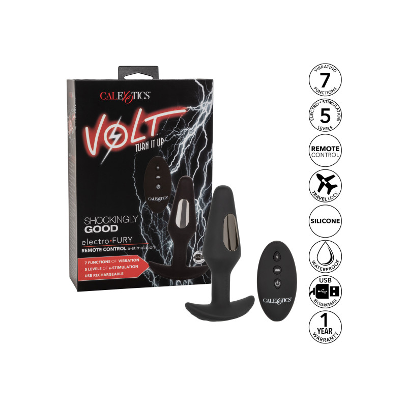 Stimola i sensi con l'eccitante Volt Electro Fury. La sonda di elettrostimolazione del telecomando contiene 5 funzioni indipendenti di livelli di e-stim e 7 funzioni di vibrazione per un piacere emozionante. Il sottile plug affusolato è fatto per muoversi con i tuoi movimenti, mentre il corpo sottile offre divertimento per principianti. I cuscinetti di stimolazione elettronica in lega senza nichel funzionano fornendo piccoli impulsi elettrici ai muscoli responsabili di orgasmi e piacere intensi. Gli elettrostimolatori strategicamente posizionati pulsano delicatamente per intensificare la sensazione e raggiungere l'orgasmo.