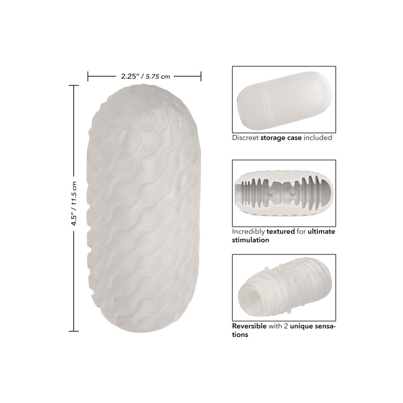 Informazioni aggiuntive : Stroker reversibile di qualità superiore con custodia, Morbido, aderente ed elastico, Struttura a coste per la massima soddisfazione, Chiuso per un'aspirazione superiore, Igienicamente superiore e senza manutenzione.