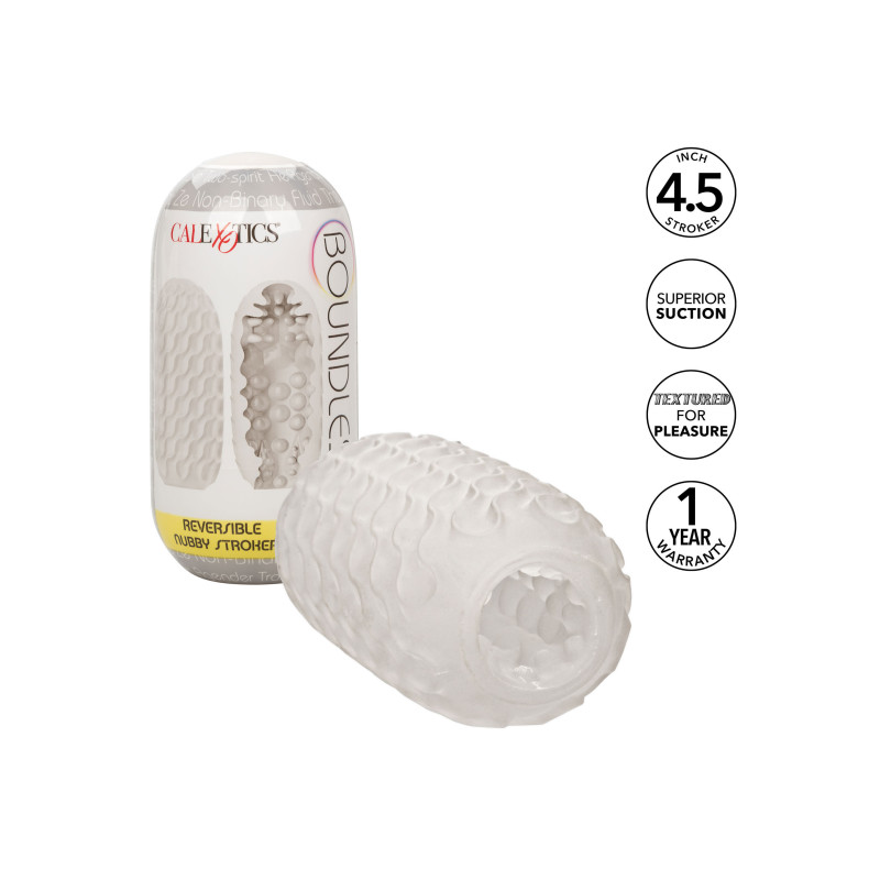 Il piacere infinito è nelle vostre mani con l'incredibile Boundless Reversible Nubby Stroker. L'accarezzatore di qualità superiore soddisfa il vostro piacere con una stimolazione testurizzata reversibile, un design chiuso e una comoda custodia. Stuzzica e soddisfa con l'esclusivo design reversibile, che comprende una superficie morbida e increspata e una stuzzicante trama a nido d'ape per sensazioni uniche di accarezzamento. Un'esperienza di piacere esplosiva grazie al design chiuso che offre un'aspirazione superiore. Sia a casa che ovunque il piacere vi porti, il design compatto da 11,5 cm (4,5") e la comoda custodia lo rendono il compagno di viaggio che desiderate. Il pregiato TPR non è profumato, non contiene ftalati e non richiede manutenzione, per mantenere i vostri punti più sensibili felici e sani.